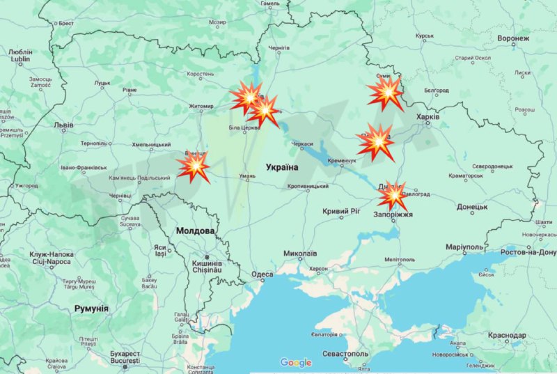 TelegramДва майора▪️В течение ночи ВС России нанесли удары БПЛА "Герань" и ракетным вооружением воздушного базирования с четырёх Ту-95мс, а также МиГ-31, в т.ч. с применением гиперзвуковых "Кинжалов". Взрывы звучали в столице противника, Полтавской, Днепропетровской, Винницкой, Сумской областях. Киевская городская администрация заявила, что применялись крылатые ракеты Х-101/Х-555/Х-55, которые заходили на Киев с южного направления несколькими волнами. Практически одновременно с ракетами на Киев также же с южного направления двигались ударные БПЛА. Враг также сообщал о применении ВС России баллистических ракет. Карта вражеская ▪️В свою очередь, ВСУ атаковали Крым. Губернатор Севастополя сообщил, что "все воздушные цели уничтожены высоко в небе, большая часть над акваторией". Поступали сообщения об упавших осколках в районе улицы Комбрига Потапова и в районе Юхариной балки. Пострадавших, предварительно, нет. Два майора
